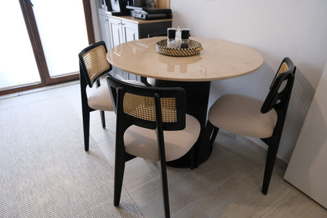 Renk uyumu, malzeme seçimi ve mobilya yerleşiminde hem modern çizgileri hem de sıcak bir ev atmosferini yakalamaya özen gösterdik. Oturma odalarında huzur ve rahatlık ön planda tutulurken, yemek odasında aile buluşmalarını keyifli hale getirecek şık ve davetkâr bir ambiyans oluşturduk.